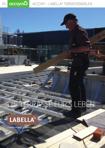 26 ACCOYA – LABELLA TERRASSENDIELEN ® ® DIE TERRASSE FÜR’S LEBEN. 2 Abmessungen, 5 Trend-Farbtöne
