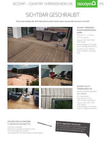 Die zuverlässige, dezente Befestigung ohne sichtbare Verschraubung! Für elegante Terrassen. Klassisches Design: Die V4A-Edelstahlschrauben bieten einen spannenden Kontrast zum Holz!