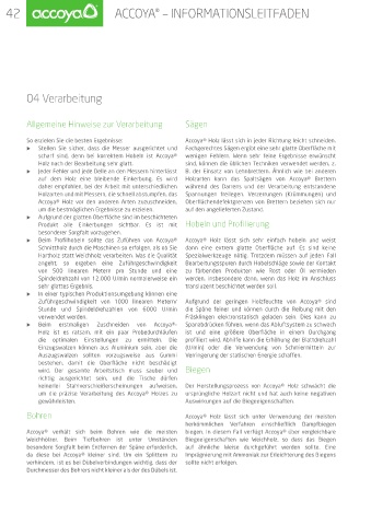 X Beim Profilhobeln sollte das Zuführen von Accoya® Accoya® Holz lässt sich sehr einfach hobeln und weist
