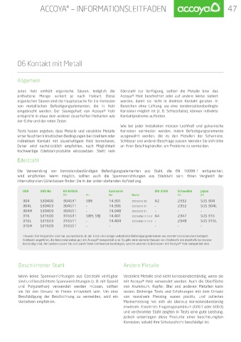 Edelstahl angeführt, die bekannterweise gut mit Accoya® kompatibel sind. Es gibt viele weitere Klassen von Edelstahl, die ebenfalls korrosions-